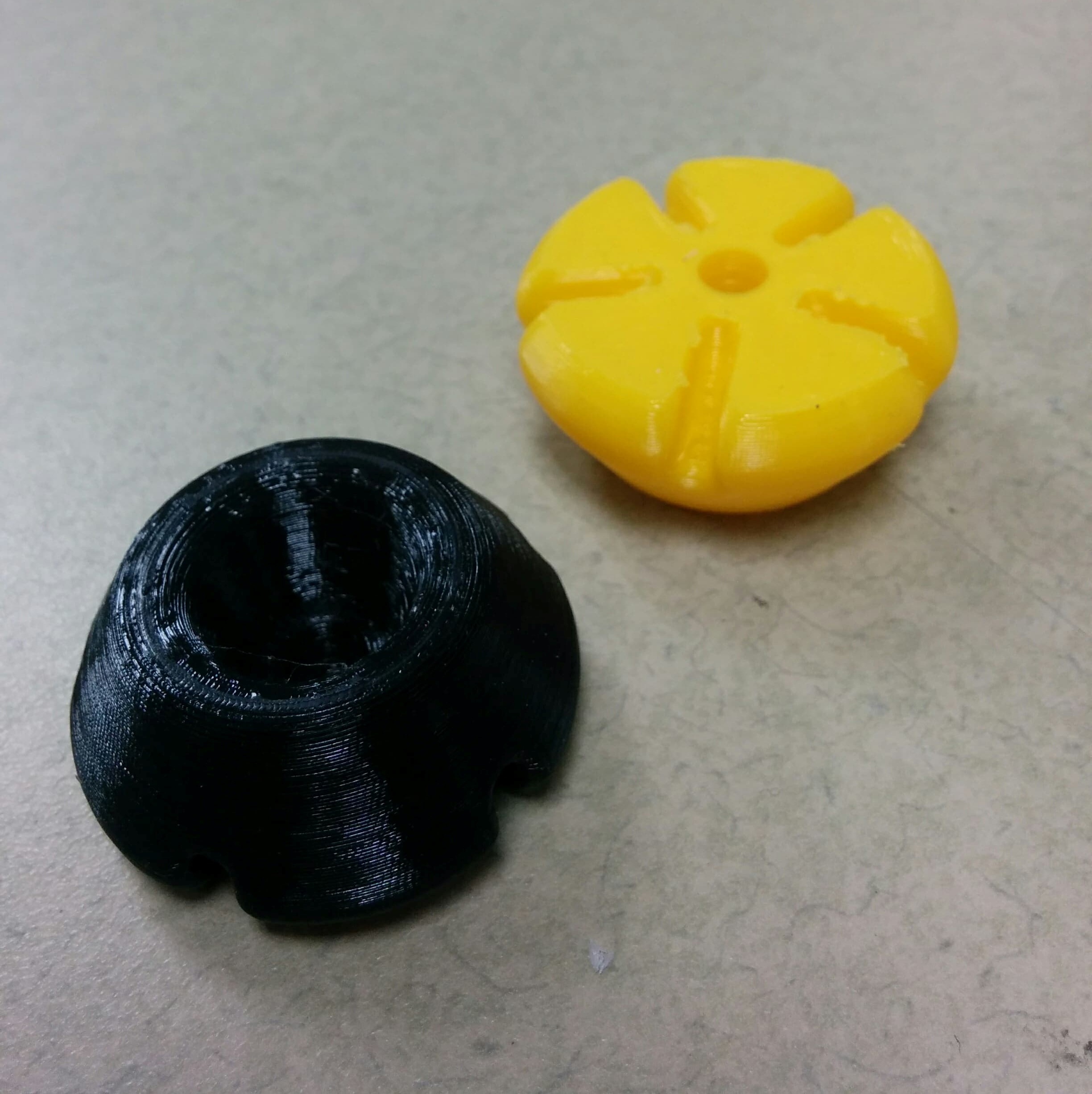 To prevent damage to the bolt head composing the structure of the end cap, a bumper needed to be made to dampen the impact and redirect the load to go not entirely through the bolt head. As shown in the past, a lack of bumper easily damages and shears the bolt head.